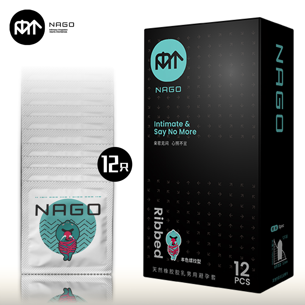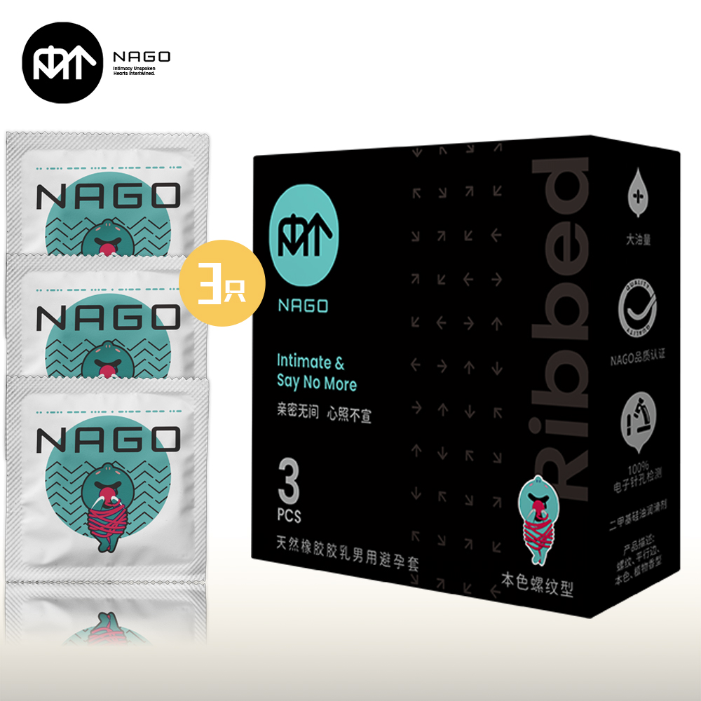 NAGO避孕套开口端为卷边,顶端带贮精囊,以避孕为目的且有助手防止性传播疾病的男性用具。