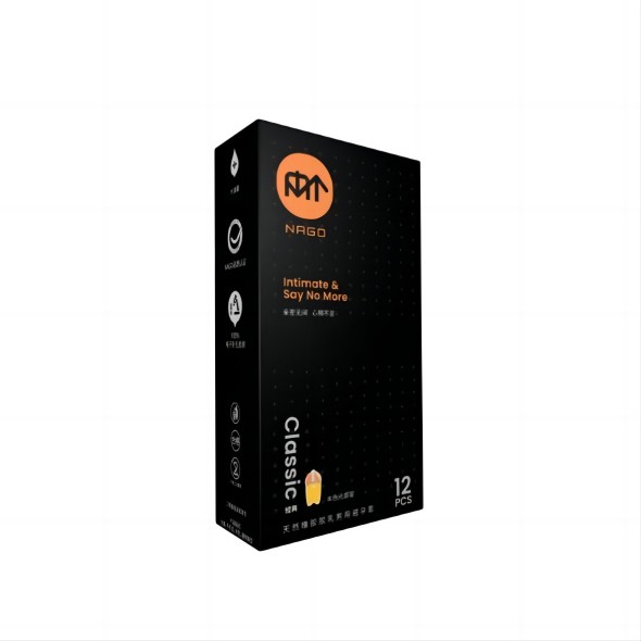 The NAGo Classic condom is made of natural latex and additives, with osuper tight and large end desian and added with a large amount omedical lubricant Does not contain spermicide, Providing a more realisticand deliahtful sexual experienceThe open end of NAco condom is crimped, and there is a seminal vesidleat the top, lt is desianed for male use, servina as a contraceptive methodand offering protection against sexually transmitted diseases.