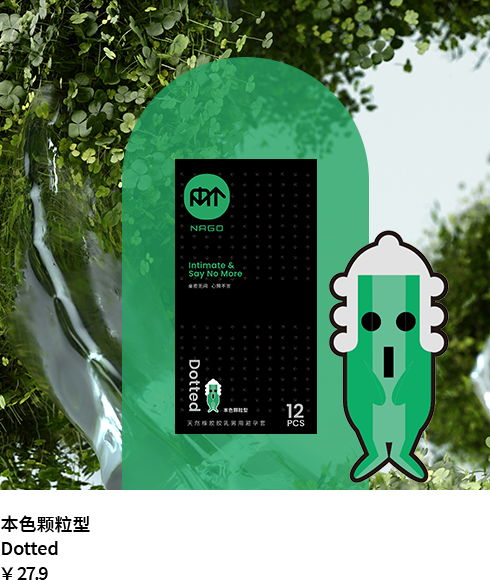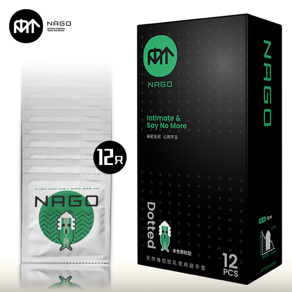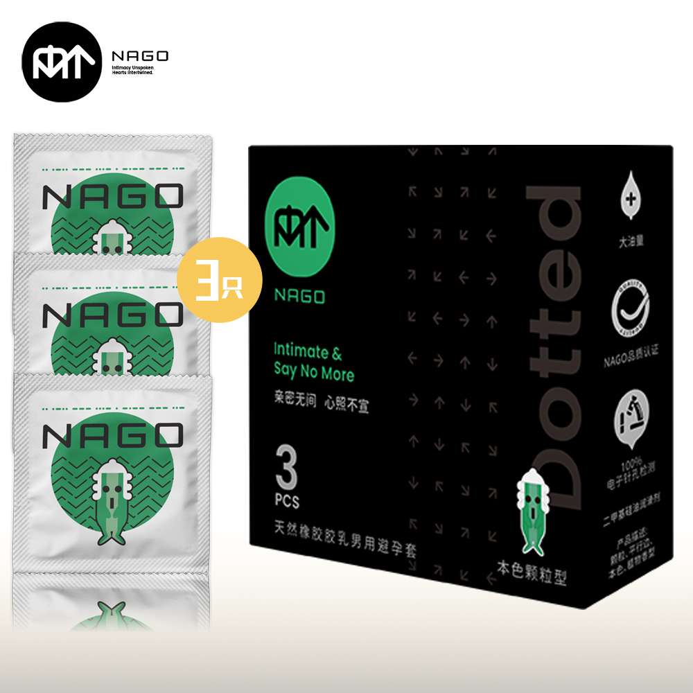NAGO避孕套开口端为卷边,顶端带贮精囊,以避孕为目的且有助手防止性传播疾病的男性用具。