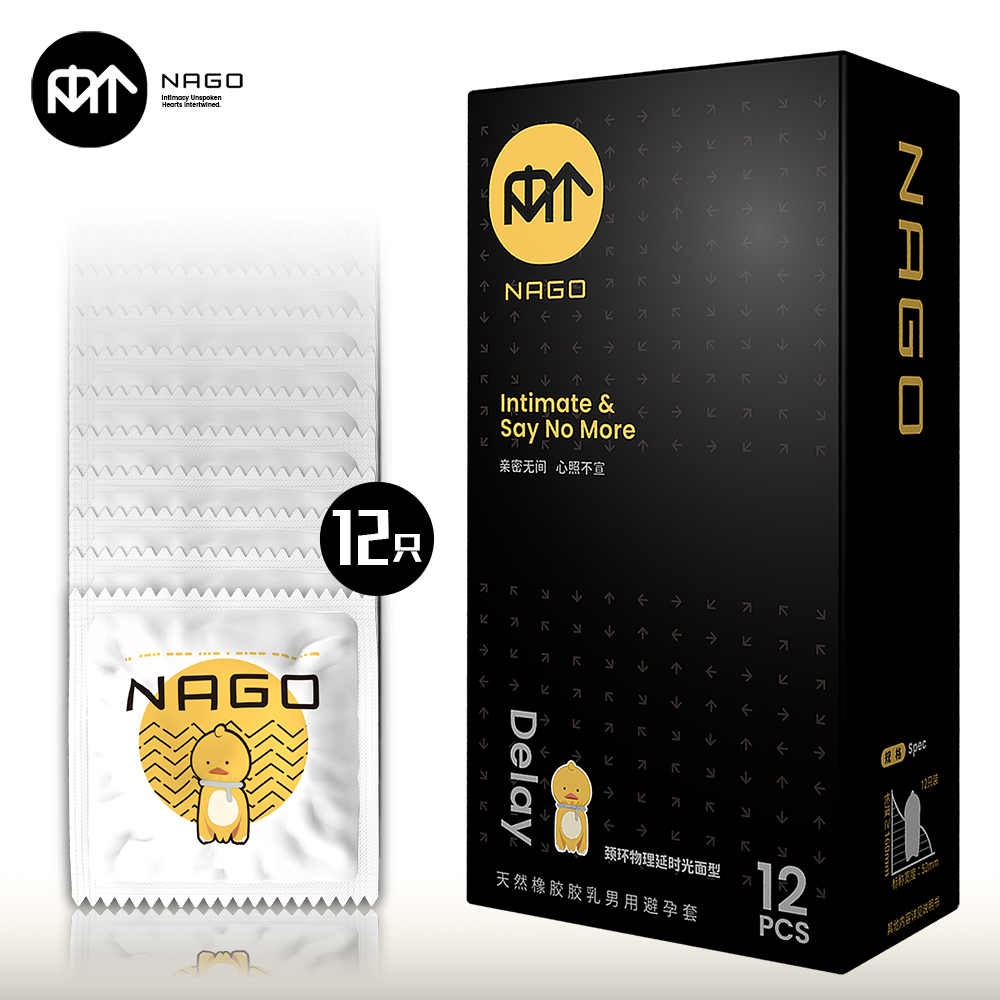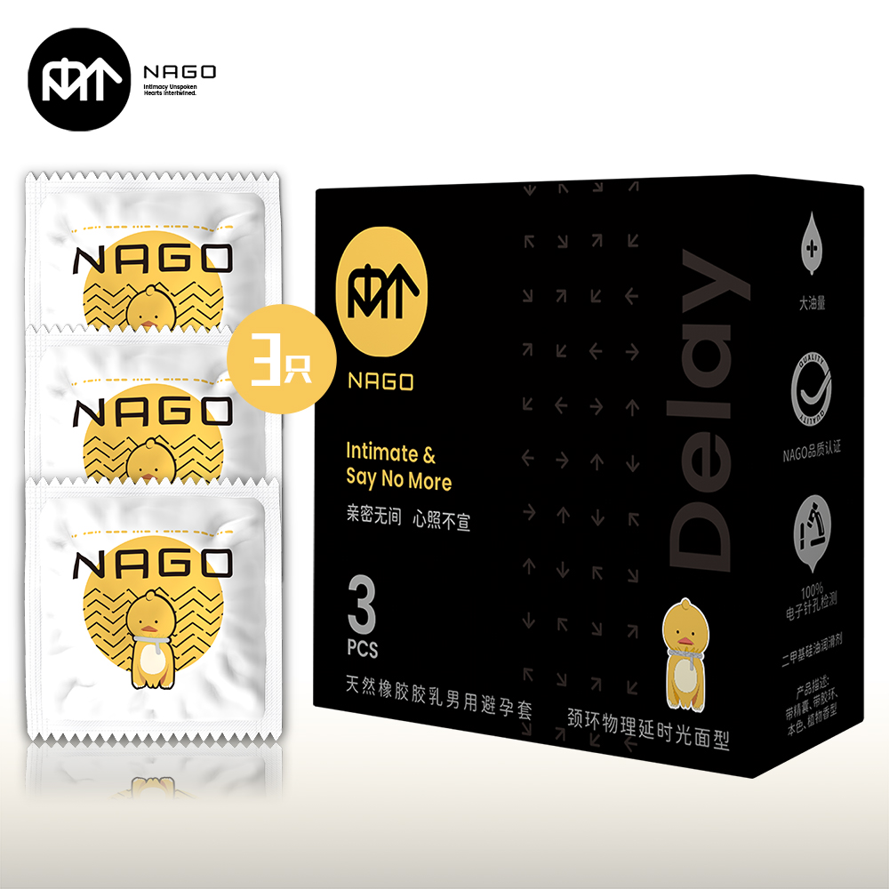 NAGO避孕套开口端为卷边,顶端带贮精囊,以避孕为目的且有助手防止性传播疾病的男性用具。